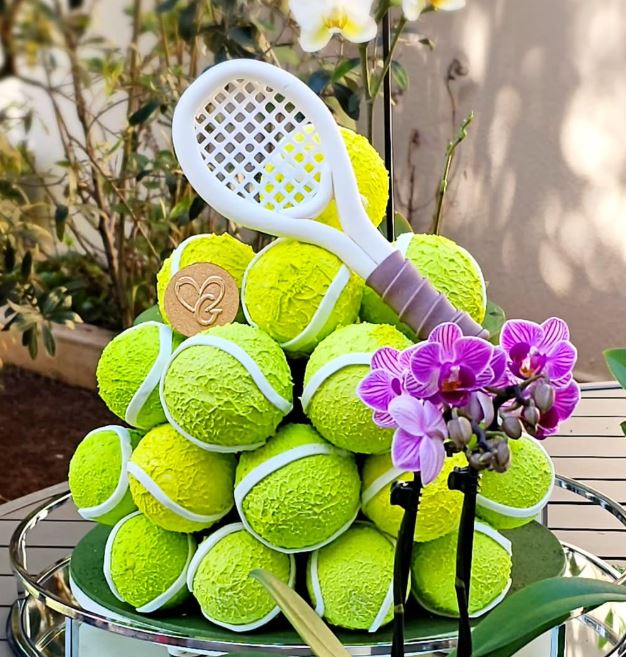 Raquete de tênis acessório para bolo. Pode ser usada como base para pasta americana ou acessório. produzido com PLA, material de origem natural (amido de milho, entre outros), o que o caracteriza biodegradável.