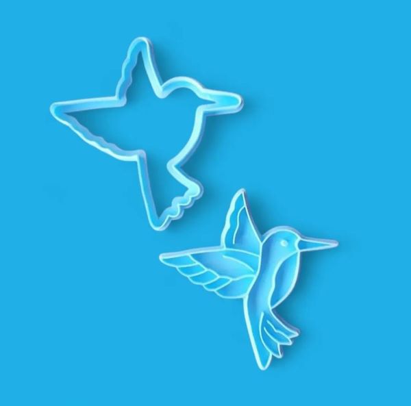 Cortador e marcador beija-flor, para temas como, Floresta, Jardim, Passarinhos. Pode ser usado em pasta americana. Produzido com PLA, material de origem natural (amido de milho, entre outros), o que o caracteriza biodegradável.