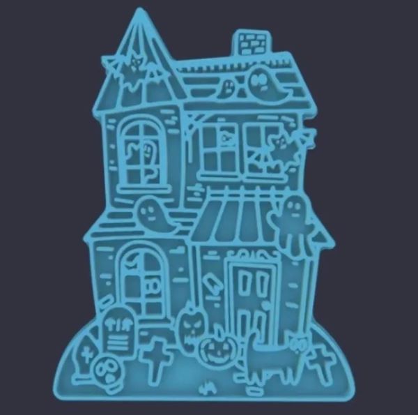 Cortador e marcador Casa Halloween, pode ser usado para pasta americana. Produzido com PLA, material de origem natural (amido de milho, entre outros), o que o caracteriza biodegradável.