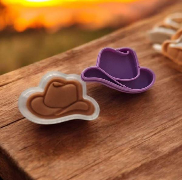 Cortador e marcador chapéu cowboy para tema boiadeira, boiadeiro, country, pode ser usado em massa para biscoito. Produzido com PLA, material de origem natural (amido de milho, entre outros), o que o caracteriza biodegradável.