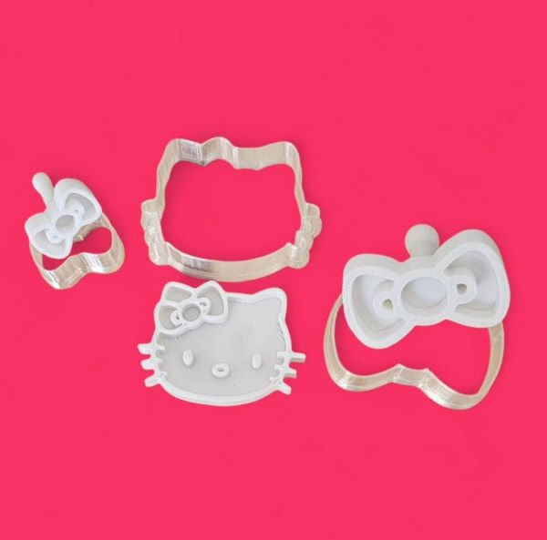 Cortador e marcador Hello Kitty aplique para doce, pode ser usado em pasta americana. Produzido com PLA, material de origem natural (amido de milho, entre outros), o que o caracteriza biodegradável.