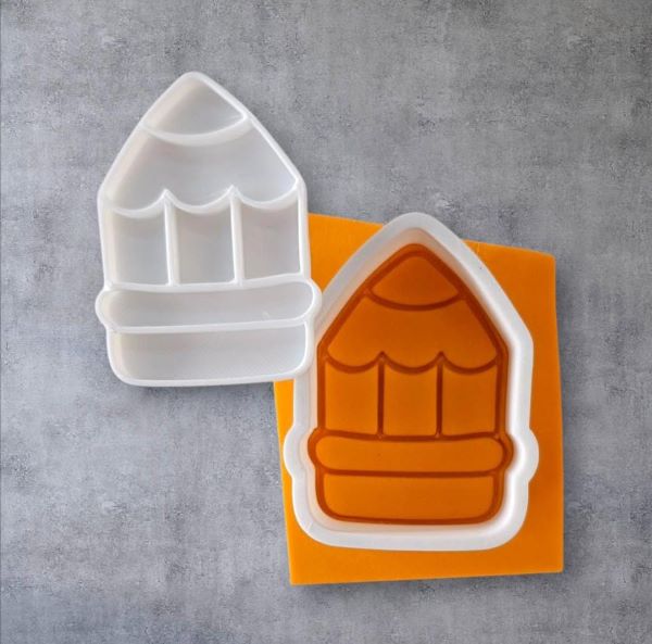 Cortador e marcador lápis tema Dia dos Professores, pode ser usado em pasta americana ou massa para biscoito. Produzido com PLA, material de origem natural (amido de milho, entre outros), o que o caracteriza biodegradável.