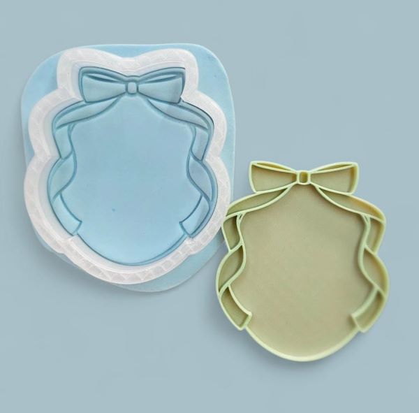 Cortador e marcador moldura com laço, pode ser usado em pasta americana. Produzido com PLA, material de origem natural (amido de milho, entre outros), o que o caracteriza biodegradável.