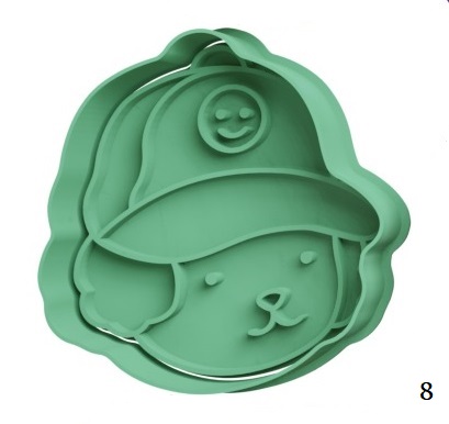 Kit Cortador e marcado dos Rostos Bobbie Goods, pode ser usado em pasta americana. Produzido com PLA, material de origem natural (amido de milho, entre outros), o que o caracteriza biodegradável.