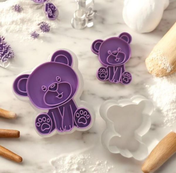 Cortador e marcador ursinho para tema chá de bebê, chá revelação, ursinhos. Pode ser usado em massa para biscoito. Produzido com PLA, material de origem natural (amido de milho, entre outros), o que o caracteriza biodegradável.