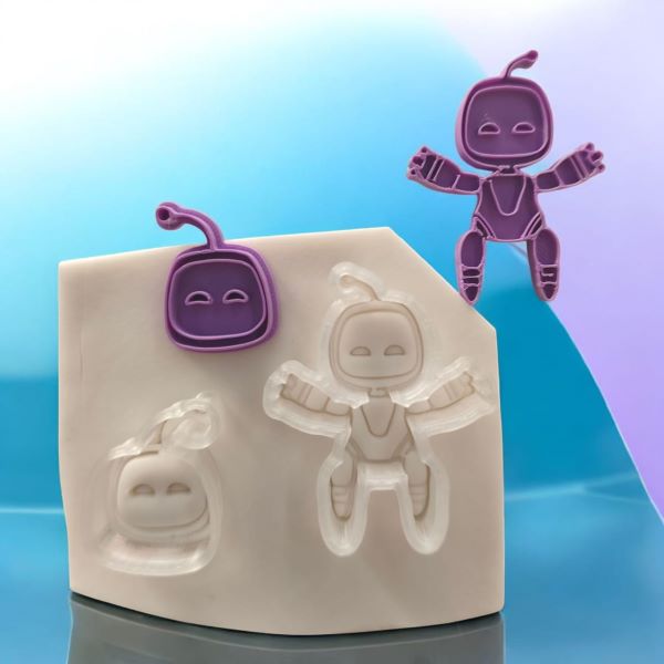 Cortador e marcador Astro Bot. Pode ser usado em pasta americana. Produzido com PLA, material de origem natural (amido de milho, entre outros), o que o caracteriza biodegradável.