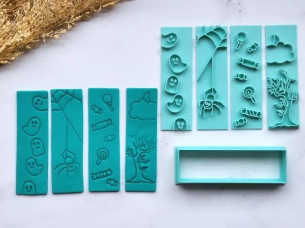 Kit cortador e marcador tema halloween, pode ser usado para pasta americana. Produzido com PLA, material de origem natural (amido de milho, entre outros), o que o caracteriza biodegradável.