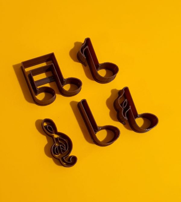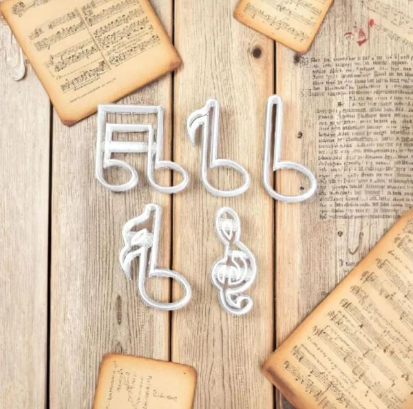 Kit Cortador notas musicais. Pode ser usado em pasta americana. Produzido com PLA, material de origem natural (amido de milho, entre outros), o que o caracteriza biodegradável.